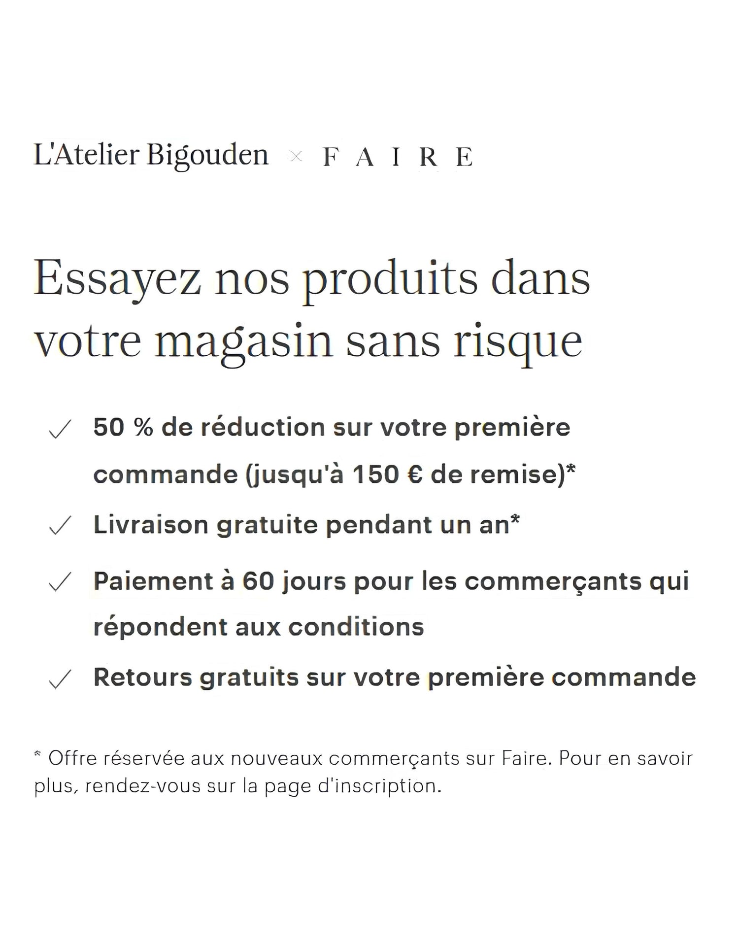 Nous sommes ravis d’annoncer que nous sommes maintenant sur @Faire, la plateforme mondiale de vente en ligne aux professionnels ! Avec Faire, nous sommes accessibles à de nouveaux commerçants aux États-Unis, au Canada et en Europe.