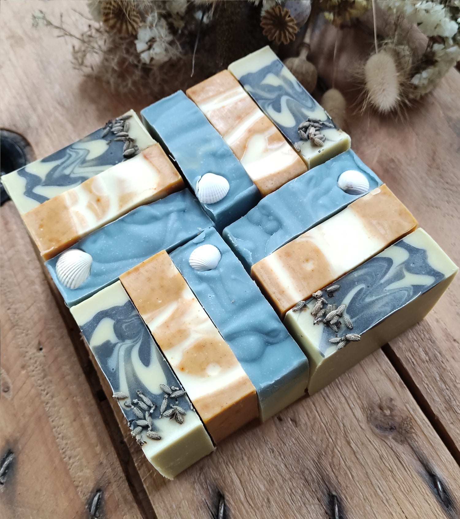 Mes savons sont artisanaux donc il se peut que l’esthétique ne soit pas exactement la même que sur la photo soit parce que chaque production est unique soit parce que j’aurai tout simplement essayé une nouvelle présentation ! Mais rassurez vous la composition restera celle indiquée !