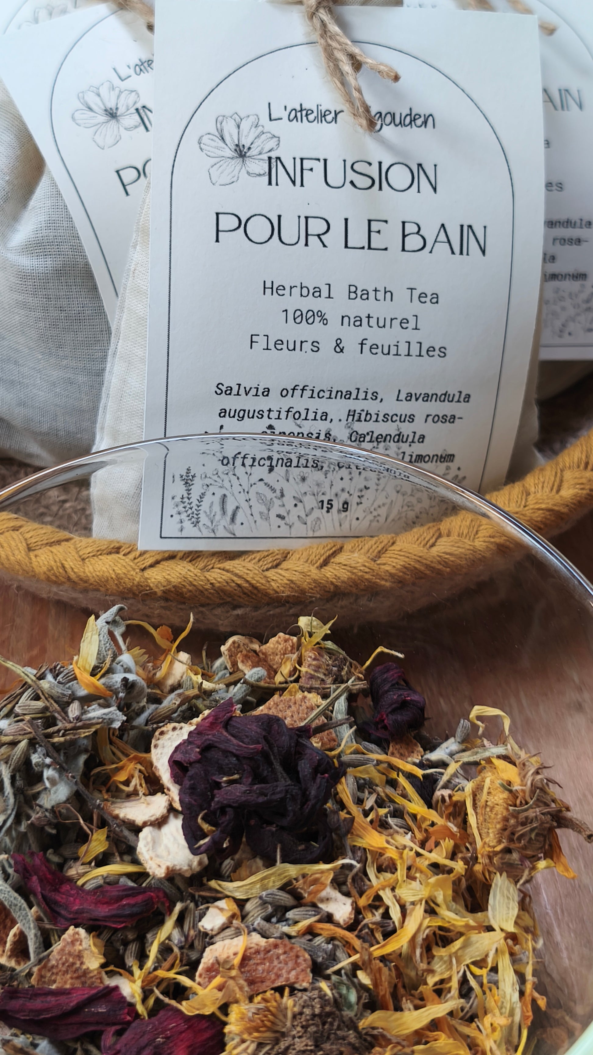 Offrez à votre corps et à votre esprit un moment de détente naturelle avec cette infusion de bain aux plantes bienfaisantes !
