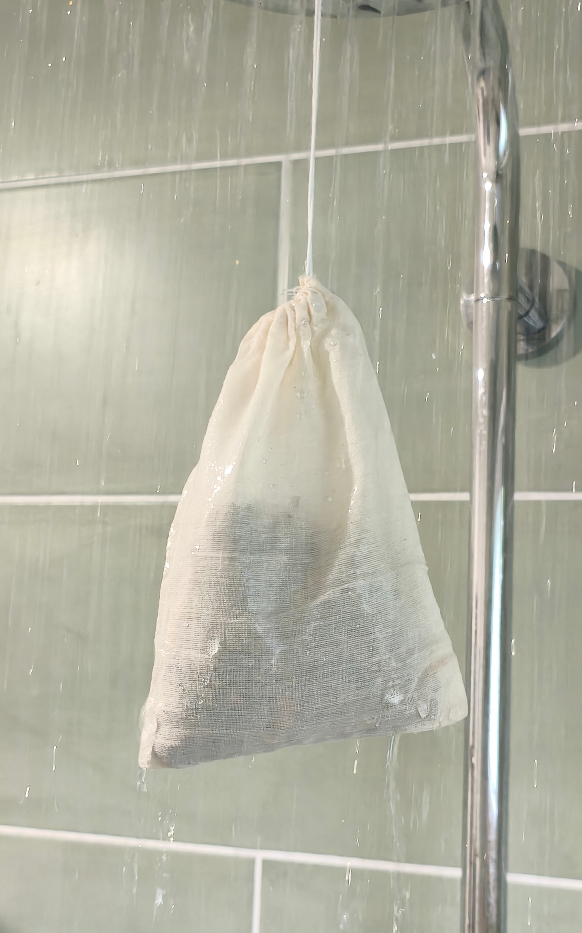Pas de panique : accrochez simplement le sachet à votre pommeau de douche ou laissez-le dans un bol d’eau chaude au sol. La vapeur diffusera les bienfaits et les senteurs des plantes pour un effet spa maison.