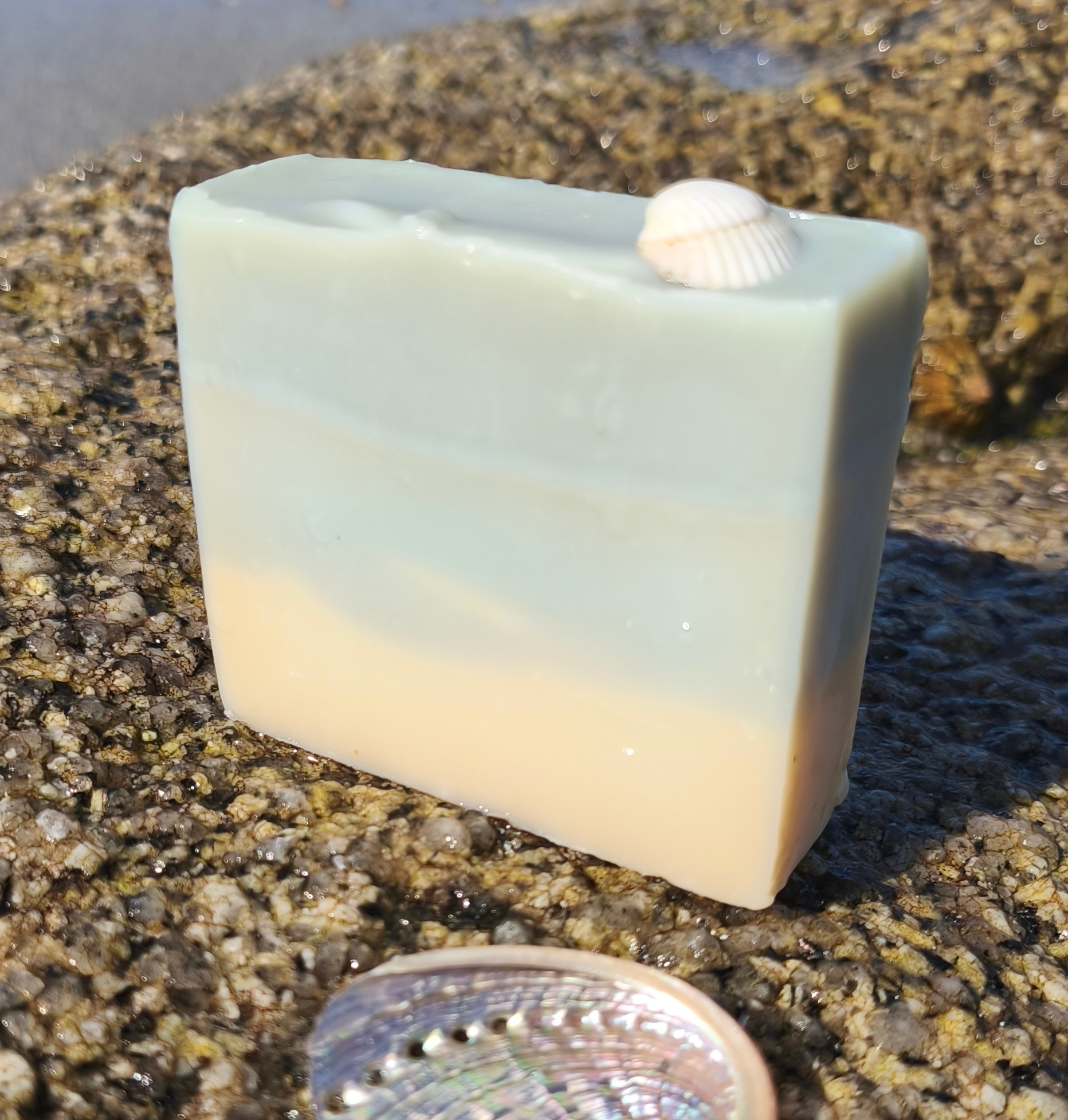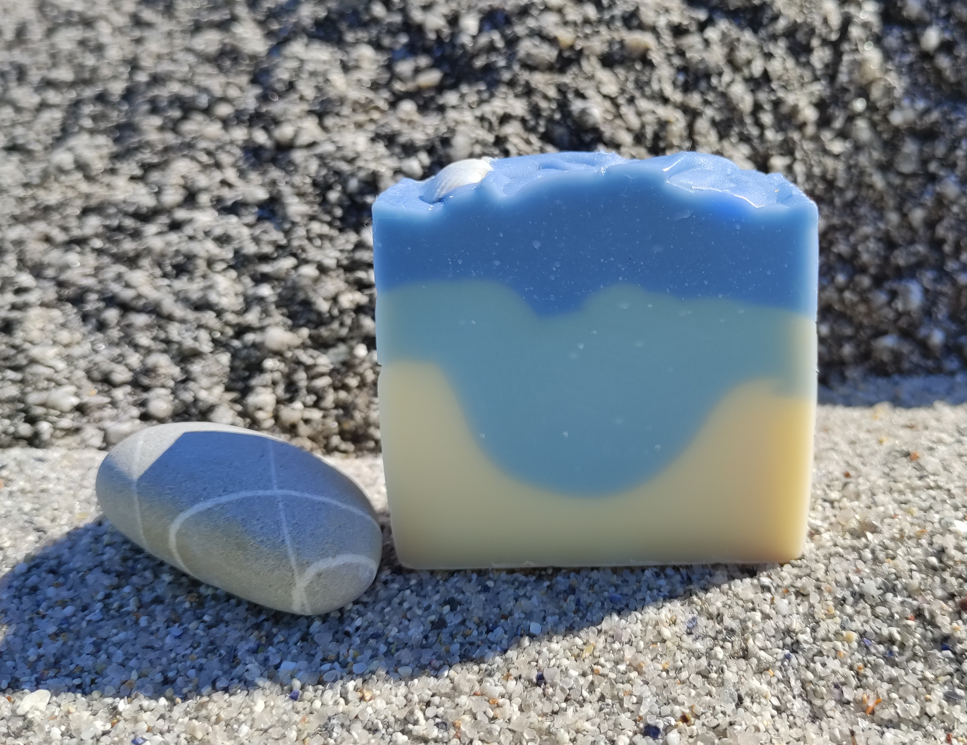 Composition | Huiles et beurre bio saponifiés et non saponifiés d’olive, de coco, de karité, de tournesol et de ricin, glycérine, argile blanche, huiles essentielles bio de litsée citronnée et de lemongrass, oxyde minéral bleu |